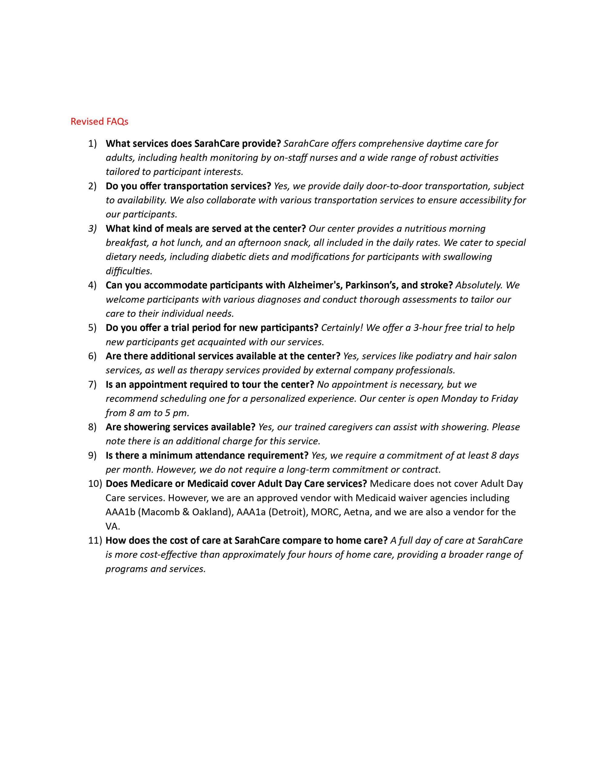 Affiliate FAQ Lakeside (MI) - SarahCare
